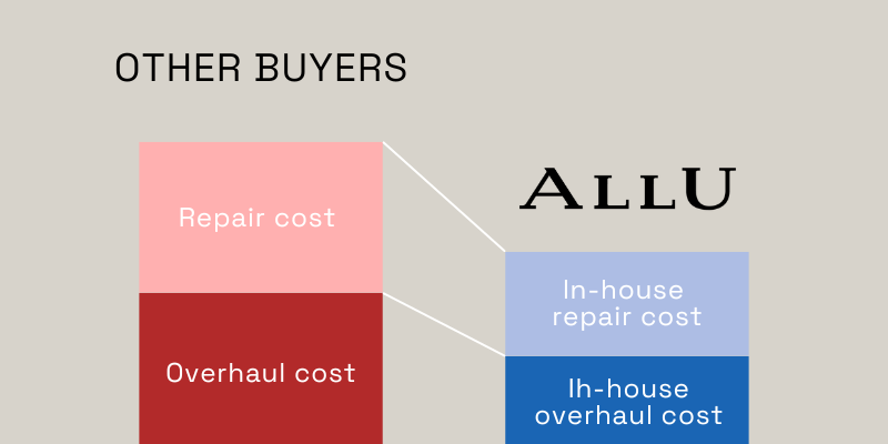 قامت ALLU ببناء نظام تداولي تقوم من خلاله بشراء القطع من الزبائن على المستوى المحلي، ومن ثمّ بيعها عبر منصاتها في جميع أنحاء العالم.